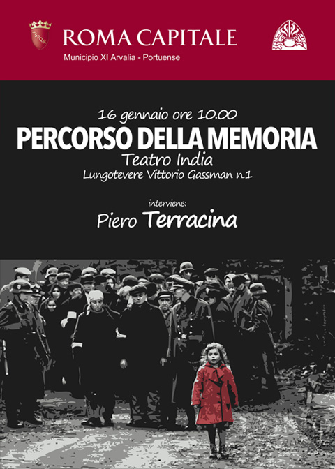 Il 27 gennaio prossimo ricorrerà il 70° anniversario del giorno in cui le truppe alleate aprirono i cancelli di Auschwitz, mostrando al mondo l’orrore dell’Olocausto. Non possiamo permettere che la barbarie e la disumanità di quanto accaduto cada nella dimenticanza, dobbiamo fare in modo che si continui a parlare ed a ricordare quelle terribili atrocità, soprattutto con il passare degli anni e la progressiva scomparsa dei testimoni diretti di quella tragedia. Per questo, anche quest’anno, abbiamo organizzato un incontro, che si terrà venerdì 16 gennaio alle 10 al Teatro India (locandina allegata), tra gli studenti delle nostre scuole e Piero Terracina, sopravvissuto ad Auschwitz dove era stato deportato dopo il rastrellamento del Ghetto di Roma. “La memoria non è il ricordo. Il ricordo si esaurisce con la persona che lo conserva. La memoria, invece, è un filo rosso che unisce il passato con il futuro. La memoria proietta il passato nel futuro, per mantenerlo vivo” ha detto Terracina ai ragazzi presenti lo scorso anno. Con l’incontro del 16 gennaio vogliamo contribuire a rendere forte e saldo quel filo rosso.
