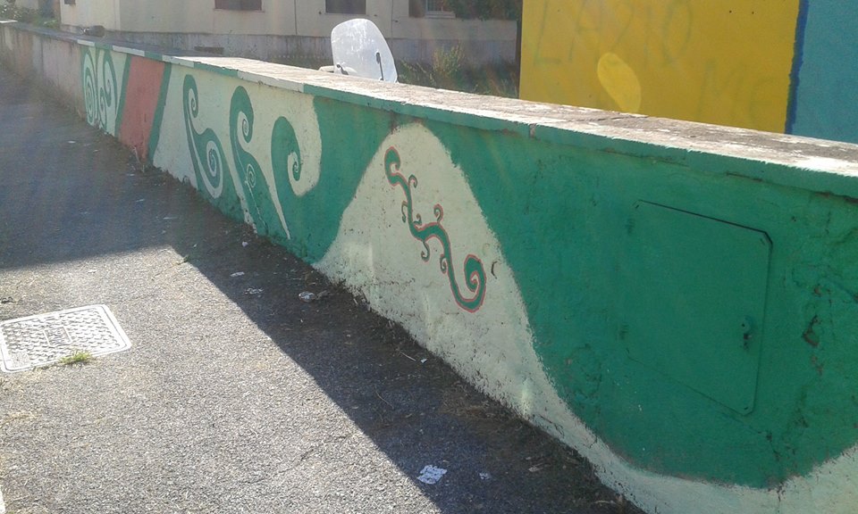 non solo righe e fasce sono i motivi decorativi della squadra Anonima, ma anche riqualificazione di muretti e scale con disegni e fantasie.