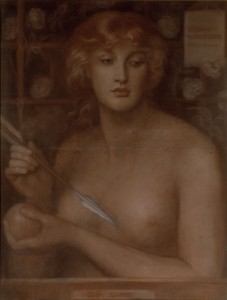 Simbolismo come nella Venus Verticordia, la dea di tutte le donne, che guida la loro vita secondo virtù, raffigurata con il pomo donato da Paride e la freccia, simbolo di Amore.
