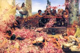 L’antico è per Alma Tadema la realtà sognata dei piaceri, dei divertimenti e delle emozioni: “Un raro pezzo di argenteria, un qualcosa completo di cesellature, un avorio scolpito e inciso, un alabastro meticolosamente lavorato”. E’ questo il commento di D’annunzio al mitologico e monumentale “Le rose di Eliogabalo”, del 1888. L’armonia delle forme e il disegno puntuale raccontano la leggenda di cui il re Eliogabalo è protagonista: egli, durante i banchetti, accoglieva i propri ospiti con una cascata di petali fiorati.