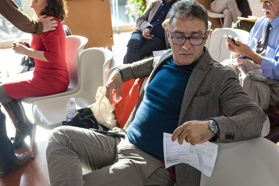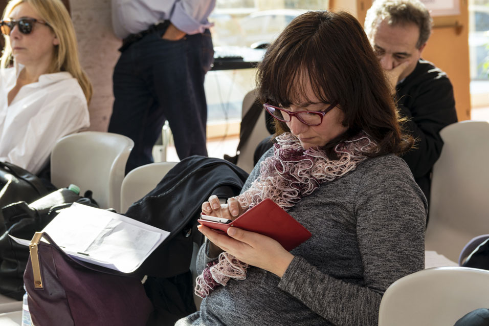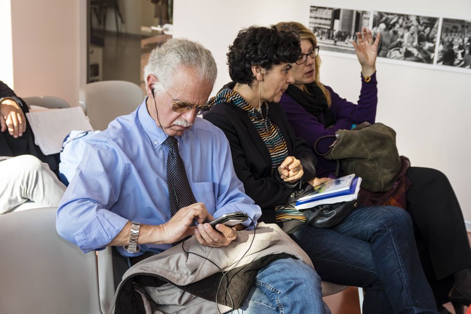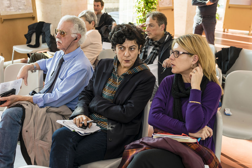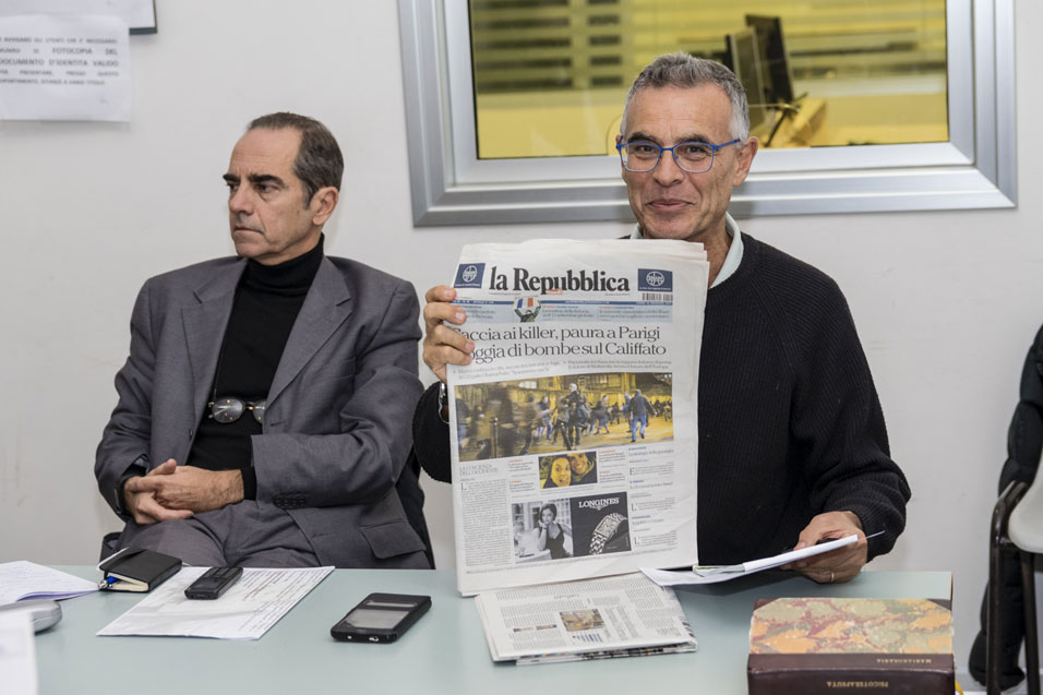 Dopo una approfondita introduzione di Teresa Bernardini che ha fatto la cronistoria del progetto di Corviale Domani dal 2008 ad oggi Tommaso Capezzone introduce il tema del tavolo: “Pensavo d’introdurre l’argomento partendo dal paradosso dei social attuali che rapportati al tempo di Van Gogh funzionano offrendo all’autore tele, pennelli e colori e pretendono in cambio tutte le opere, ma poi ho visto questa copertina della Repubblica di oggi con questa foto sporca, fuori fuoco e mossa e ho pensato di partire da questa copertina anomala che ben fotografa la realtà della comunicazione al tempo attuale. Una comunicazione che deve rincorrere l’attualità, gli stati d’animo, la velocità, l’istantaneità dei social per avere ancora una funzione.” (E’ la foto probabilmente scattata da uno smartphone di sera di persone in fuga per un falso allarme bomba a Parigi il giorno dopo gli attentati). “Do a questo punto la parola a Mariarosaria Danza che, da psicodrammatista, può dirci qualcosa su questo tema della comunicazione al tempo della paura e dell’insicurezza”.