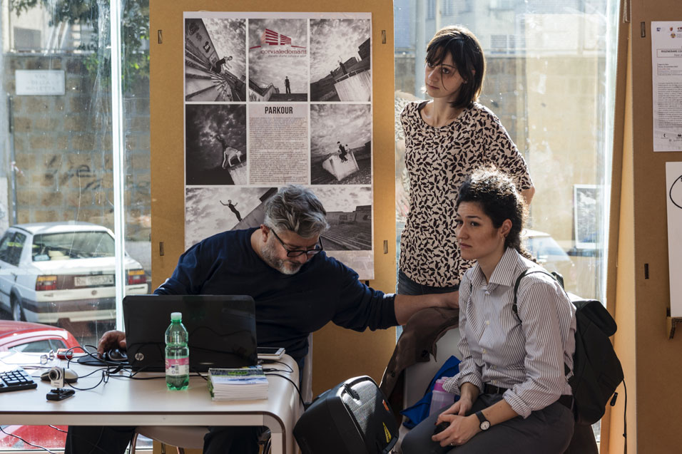 Dialogo intergenerazionale per workshop di stampa 3d con materiali di riciclo prodotti dagli appartamenti di Corviale, racconti di anziani sulle loro passate esperienze (abilita’ frutto di passioni e lavoro) e adolescenti sui loro desideri per il futuro queste due narrazioni possono incrociarsi completandosi nel progetto e nella realizzazione di un accessorio prototipale per migliorare il Palazzone, es. citofono figurato a forma di Corviale per orientarsi (materiale in plastica tenera reperito dalle cucine).