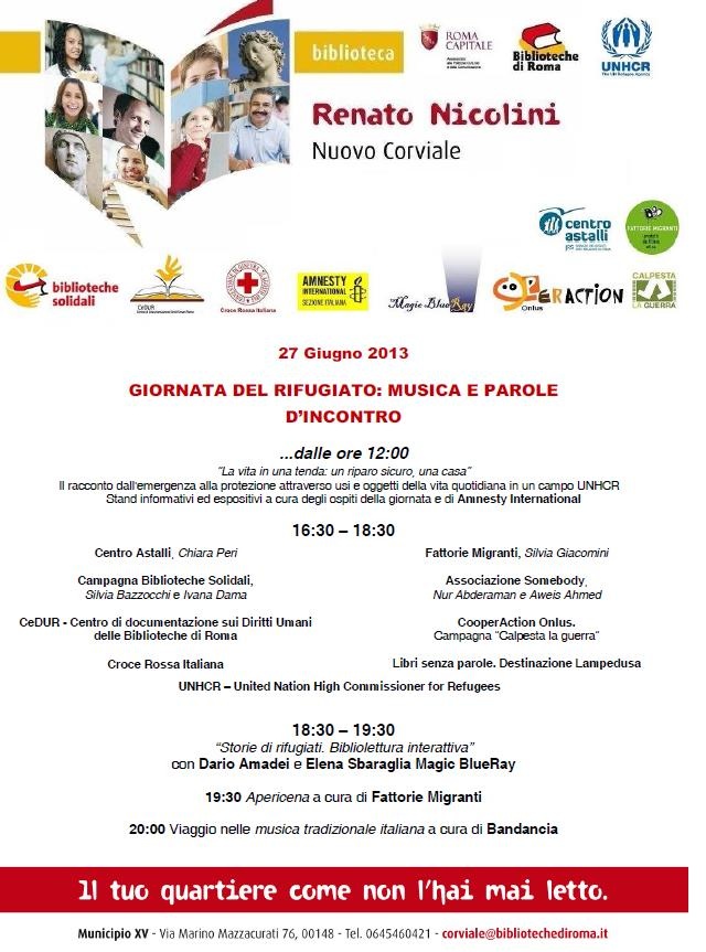 18.30 – 19.30 “Storie di rifugiati. Bibliolettura interattiva” con Dario Amadei e Elena SbaragliaMagic BlueRay