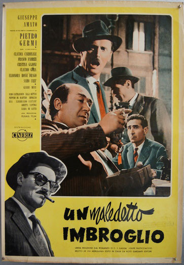 Non se ne fece niente e nel ’59 il produttore Peppino Amato – pressoché analfabeta ma di sicuro istinto – acquisì i diritti del libro e convinse Pietro Germi a dirigere il film, che nel ’59 uscì con il titolo Un maledetto imbroglio, il più bel poliziesco della storia del cinema italiano e, praticamente, un film perfetto (ai tempi fu accolto con sussiegosa benevolenza dalla critica – allora quasi tutta comunista – che non concedeva granché al “saragattiano” Germi).