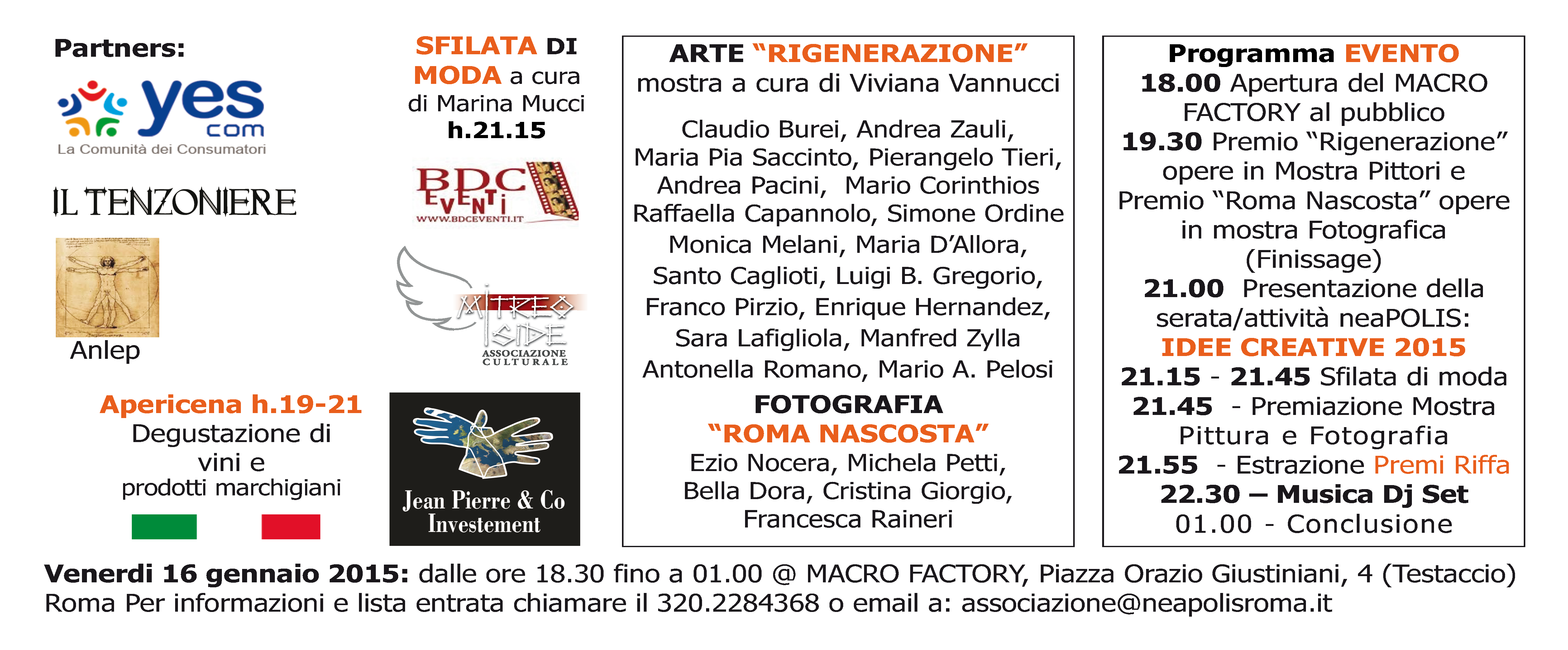 Partners: A.N.L.E.P. , Assoc. YES COM, Ass. spazioALLarte, Ass. BDC, Ass. culturale Il Tenzoniere, Jeam Pierre & CoInvestment, Studio 13, Associazione Culturale MitreoIside.