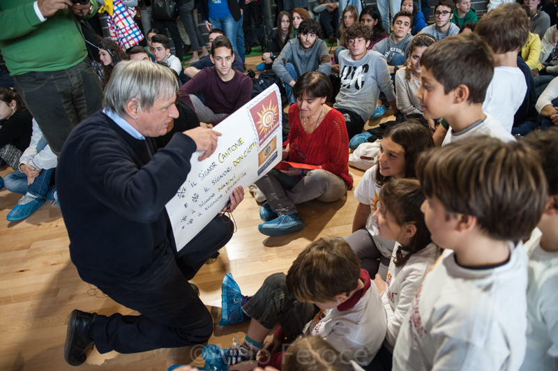 Video > Foto > Strette di mano e abbracci. L’arrivo di don Luigi Ciotti al Calcio Sociale di Corviale è stato accolto da un caloroso pubblico: giovani, giornalisti e partecipanti di ogni età hanno riempito la palestra del Campo dei miracoli nella giornata dedicata ai giovani di Contromafie, gli Stati generali dell’antimafia (Roma, 23-26 ottobre 2014).