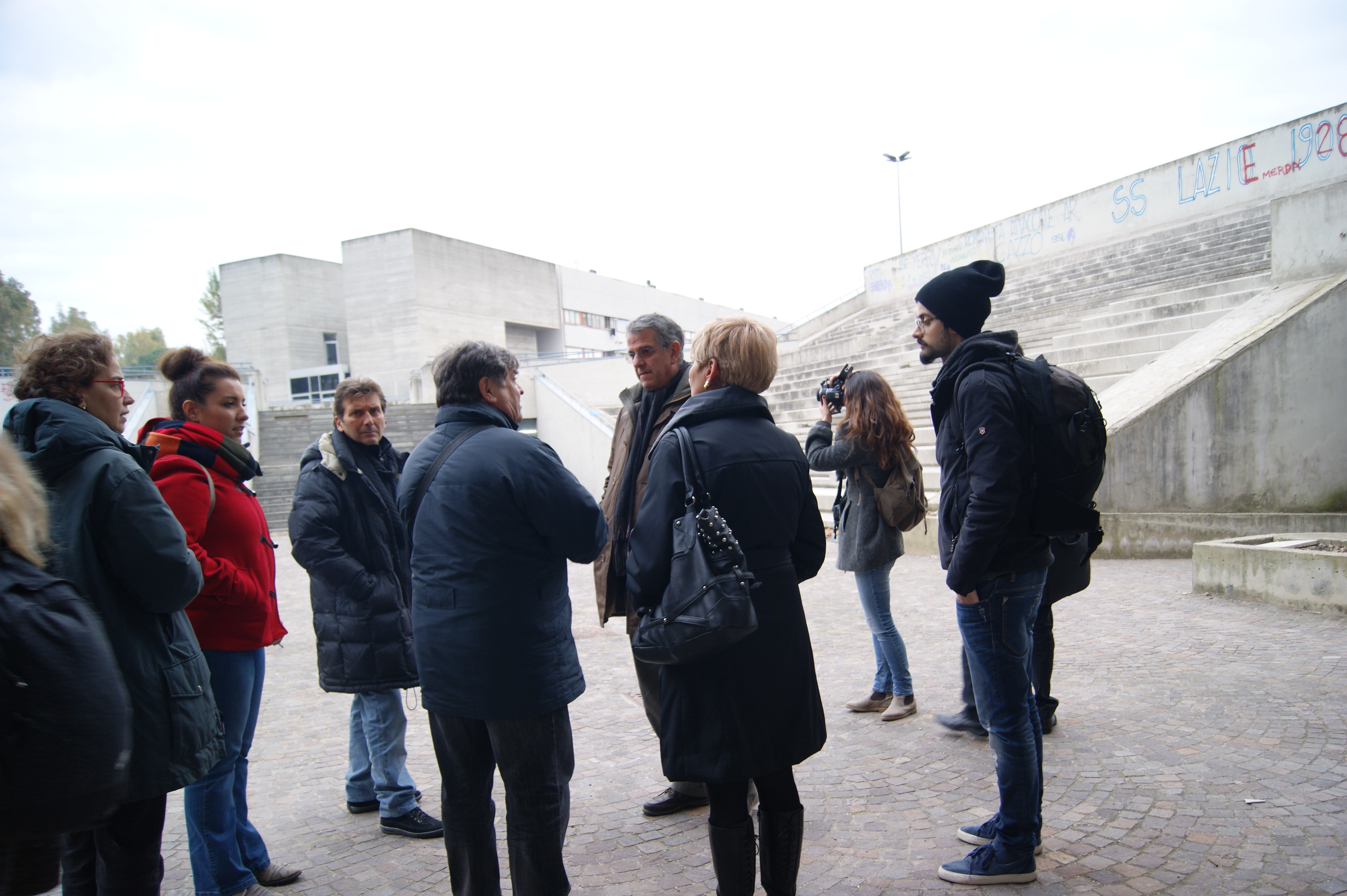 Studenti della facoltà d’architettura sono venuti a visitare il palazzo di Corviale per capire dal vivo come è stato possibile che un architetto più di trenta anni fa abbia potuto concepire una costruzione urbanistica di queste dimensione partendo da un’utopia architettonica che suscita ancora dibattiti fra gli esperti.