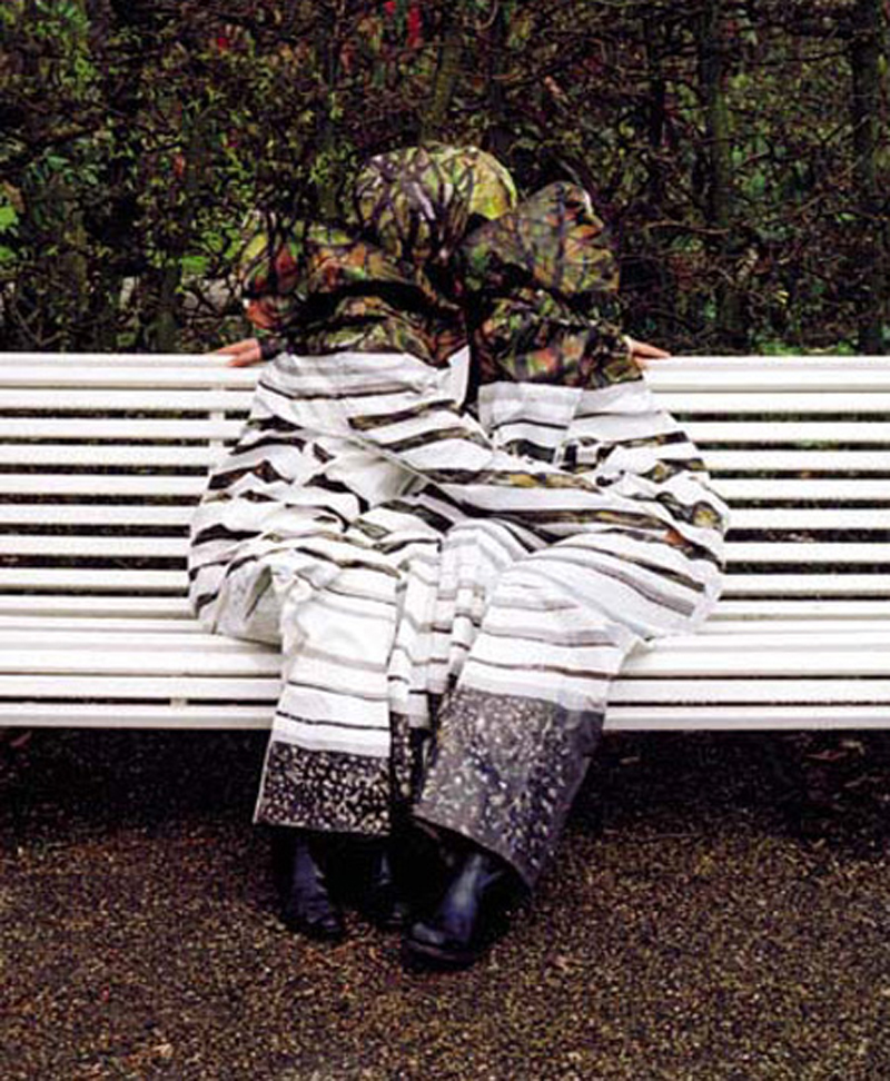 Sparire. Nascondere. Mimetizzare. Tre fotografi artisti giocano con i colori, camuffando le persone nell’ambiente. Una ricerca che ha molti sensi profondi, o forse nessuno. Ma che di sicuro, anche al solo livello estetico, imbroglia l’occhio e attrae l’attenzione.