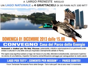 Ora questa nuova battaglia che si sta conducendo per fermare di nuovo le ruspe vorremmo che fosse l’ultima. Gli abitanti del territorio, raccolto l’allarme lanciato dal Forum Territoriale del Parco delle Energie, si sono organizzati non solo per bloccare l’ennesima speculazione ma scrivere il capitolo fine, per ottenere il completamento dell’esproprio dell’intera area, la salvaguardia del lago, l’allargamento del Parco delle Energie fino a via di Portonaccio e il recupero per fini sociali, didattici, scientifici e culturali delle persistenze di archeologia industriale.