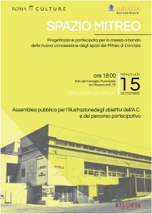 Il 15 Settembre prende il via un percorso di ascolto, consultazione e progettazione partecipata con i cittadini, le Associazioni e gli operatori, per confrontarsi insieme sulle linee guida da utilizzare per la messa a bando della nuova concessione degli spazi del Mitreo a Corviale.